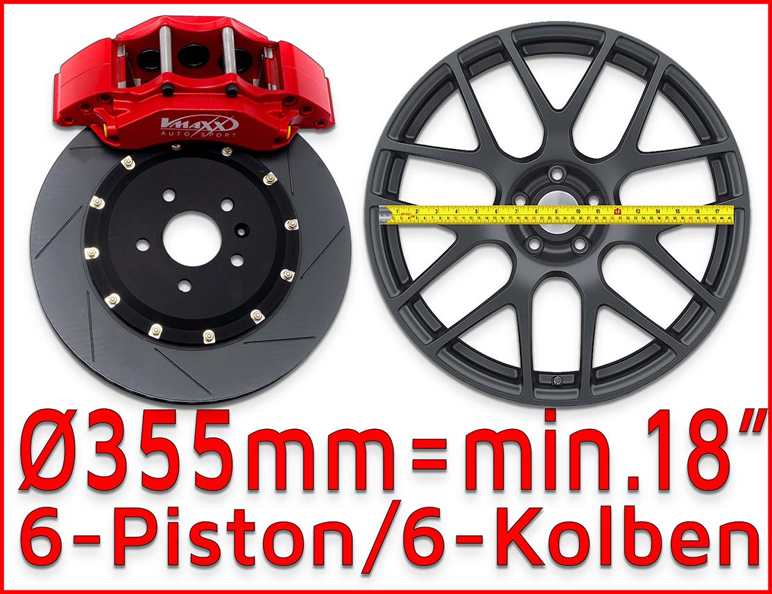 Impianto Frenante Maggiorato 6 Pompanti 355mm o 365mm AUDI A3 8Y (AMMORTIZZATORI ANTERIORI Ø55MM) – V-MAXX VMAXX